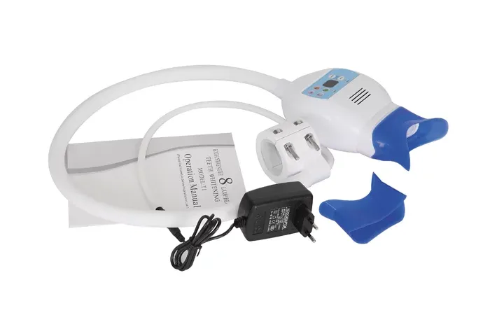 - نور آبی و سفید باعث فعالسازی ژل بلیچینگ میشود و به آن کمک میکند تا لکههای دندان را از بین ببرد.